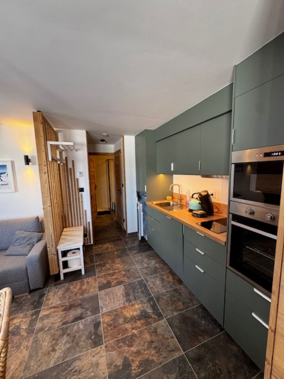 Over 35 m2, you have a bright living area renovated with taste with a fully equipped kitchen.