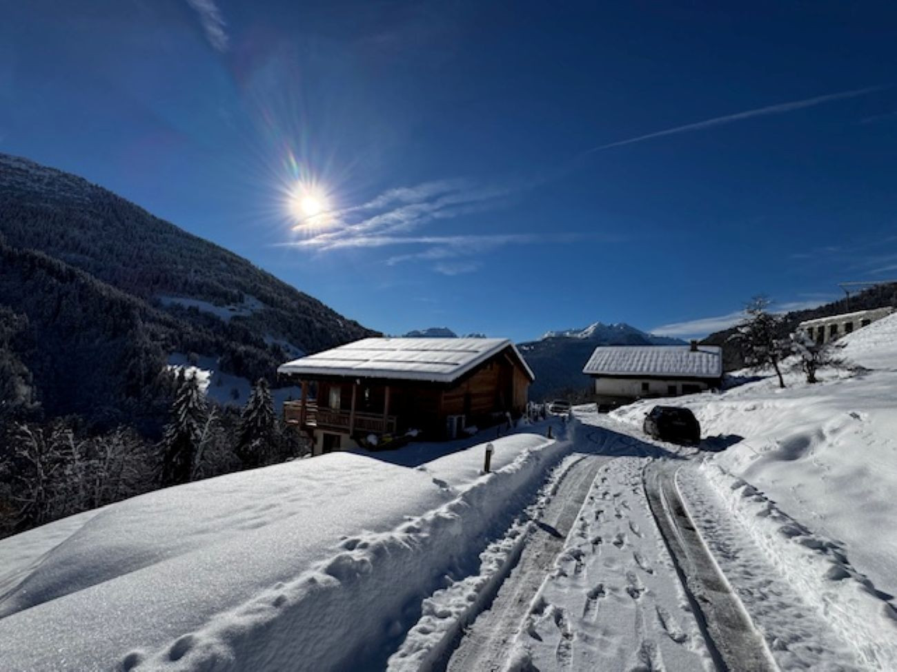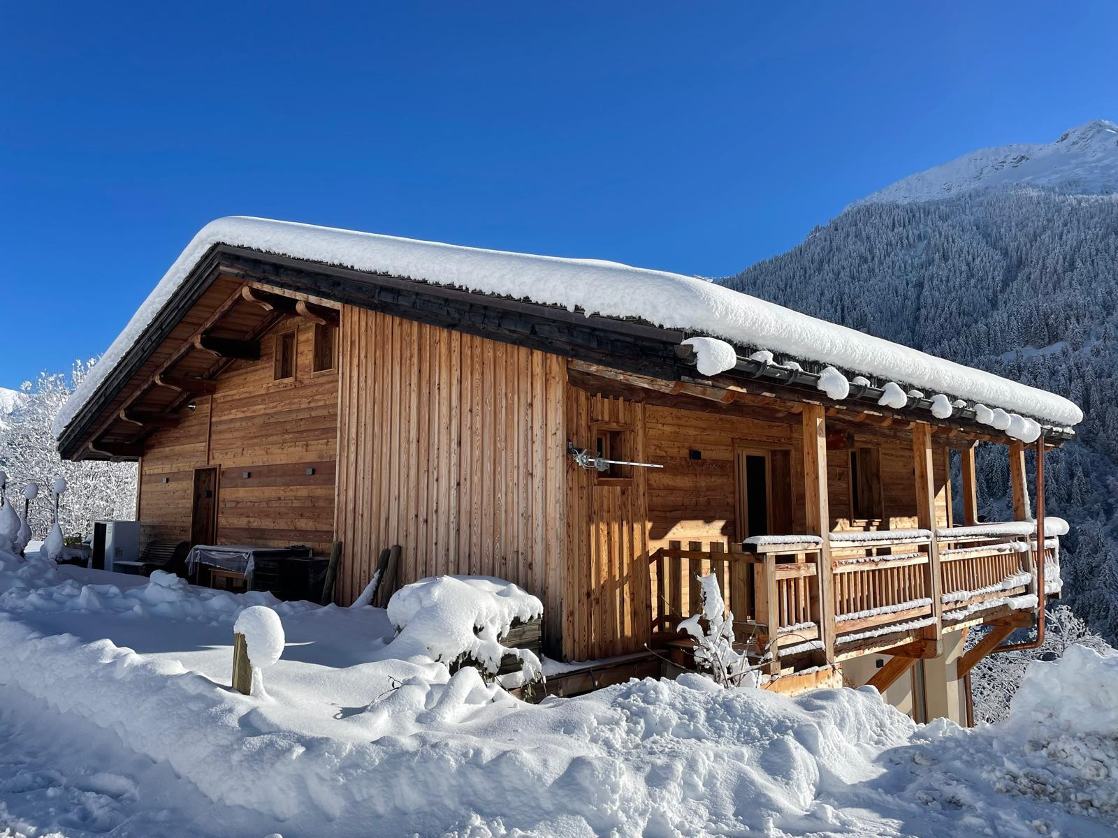 The chalet is located at 1280 m altitude, in a quiet area, at the end of a dead-end road (well cleared of snow).