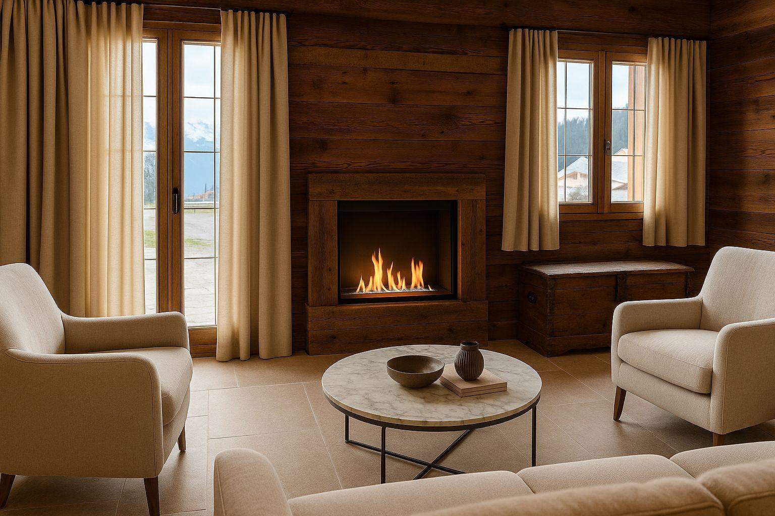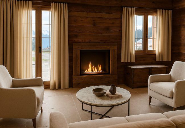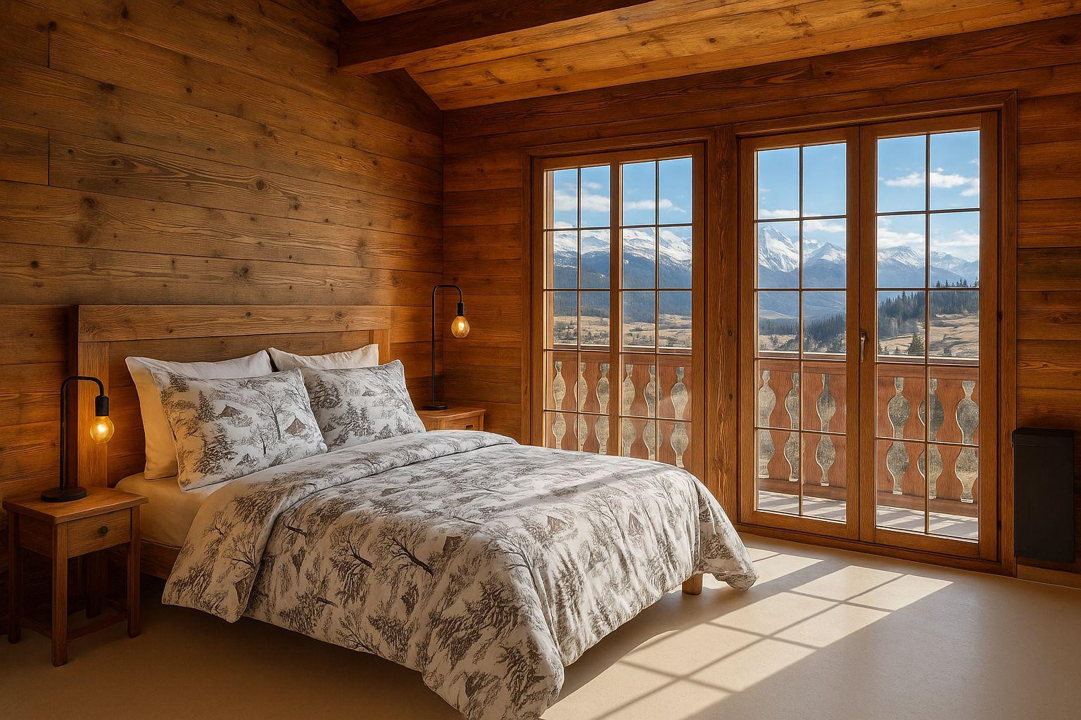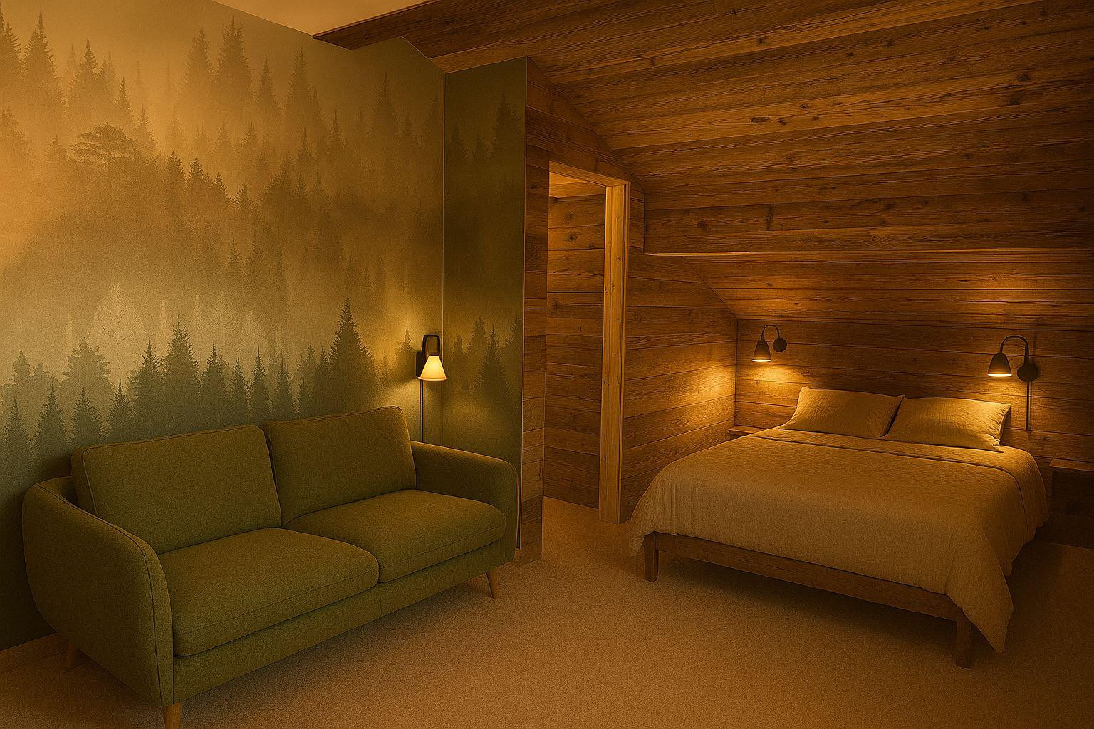 The renovation works will be completed by the end of December, and the chalet will be furnished at that time. The photos currently uploaded are generated by AI: they are non-binding, but give a faithful idea of the style and desired final rendering.