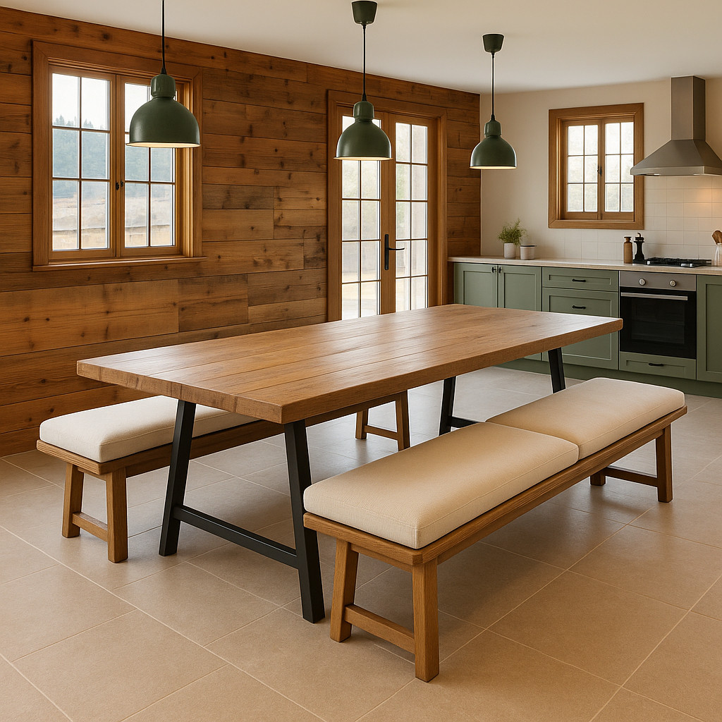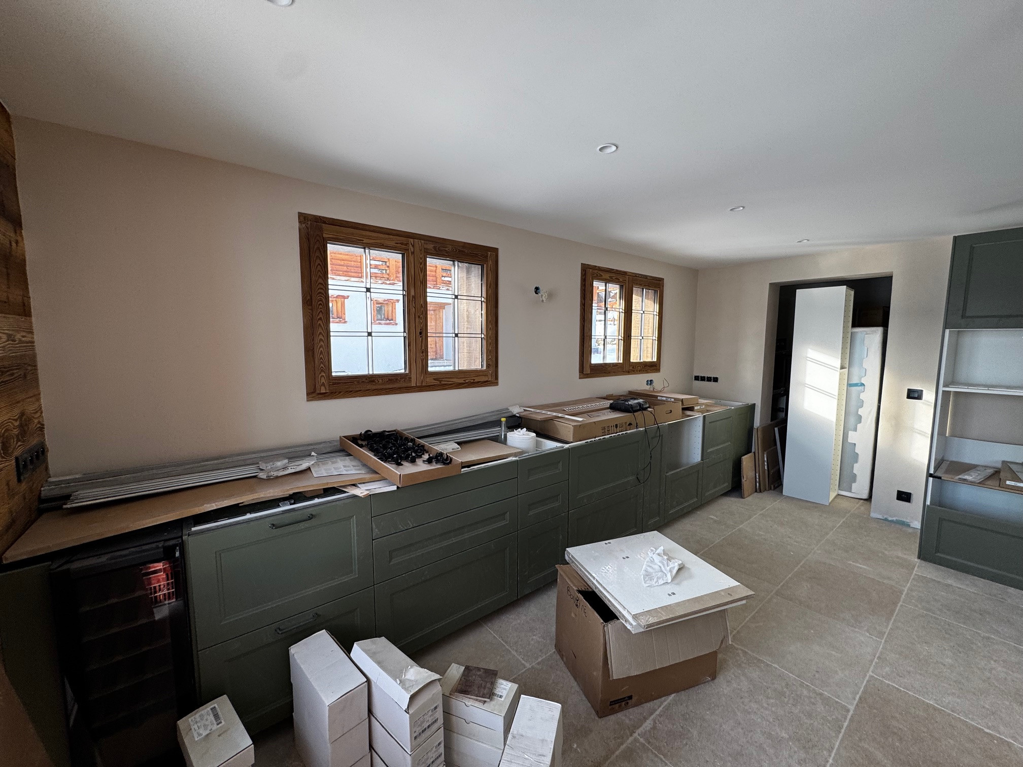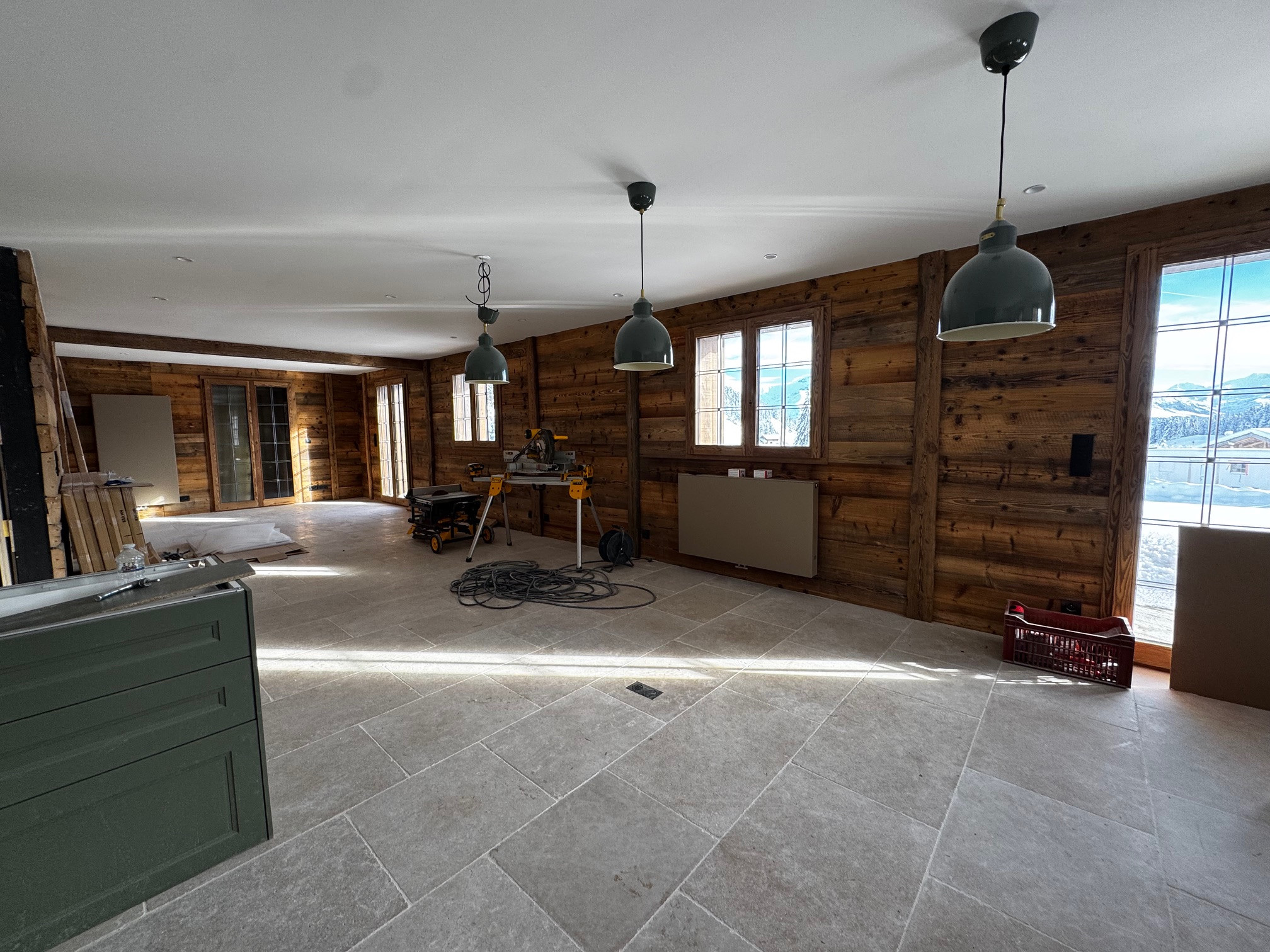 The renovation works will be completed by the end of December, and the chalet will be furnished at that time. The photos currently uploaded are generated by AI: they are non-binding, but give a faithful idea of the style and desired final rendering.