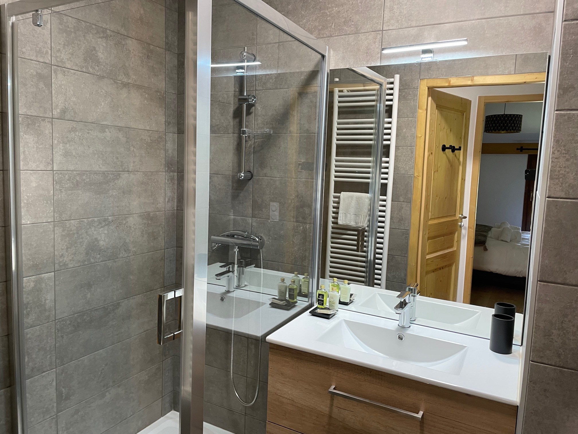 Le logement fait partie d'une récente et luxueuse résidence composée de 8 chalets et située à moins de 2 km de la station des Saisies et ses 192 km de pistes de ski alpin et 120 km de ski de fond.